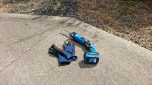 数ヶ月前に、電気のこぎりを購入。充電式で、1.5Kgくらいの重さ。